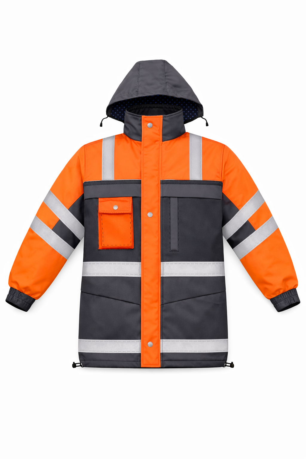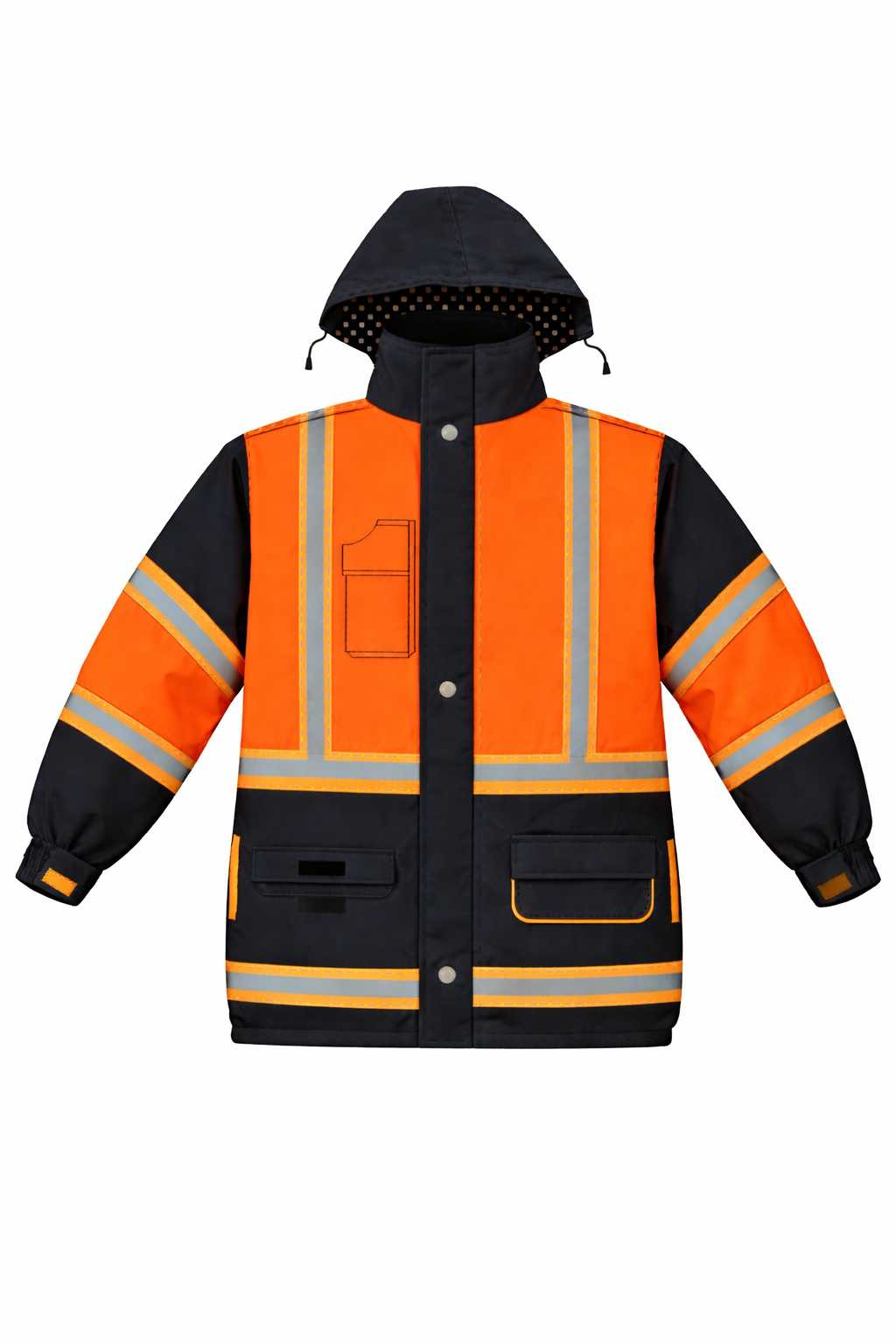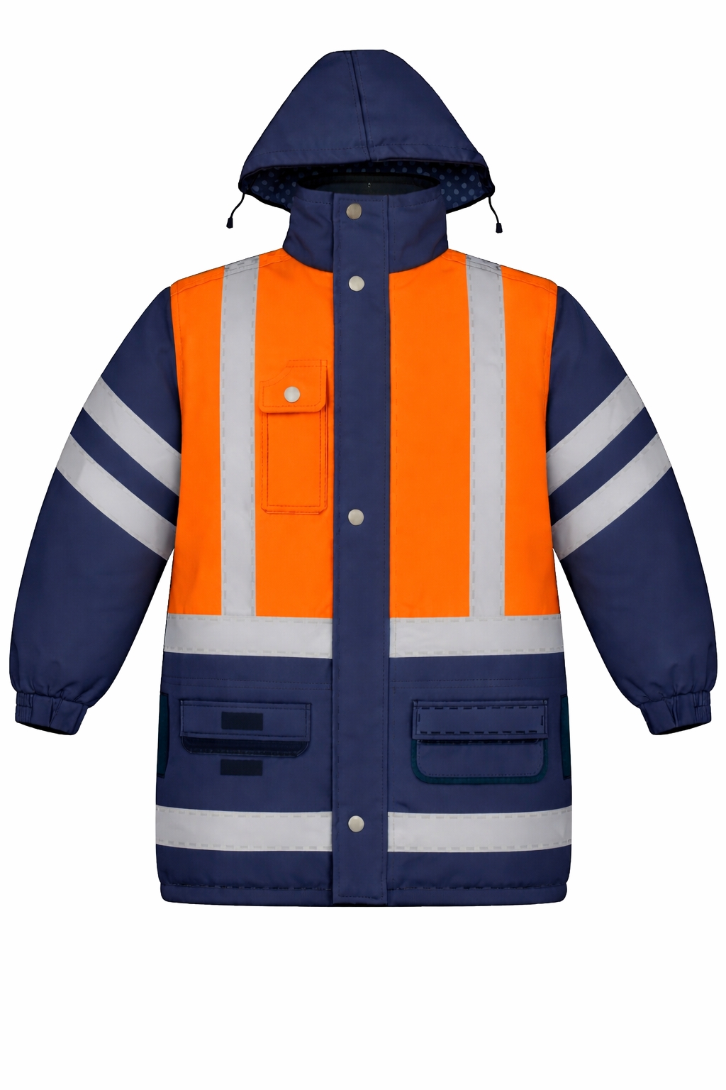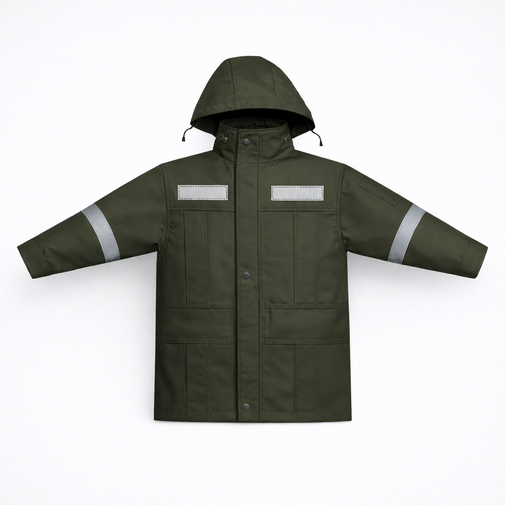 CASACA TÉRMICA CON CUELLO ALTO, 2 BOLSILLOS PARCHE CON TAPA Y VELCRO EN PECHO, 2 BOLSILLOS PARCHE CON TAPA Y VELCRO INFERIORES, UN BOLSILLO TIPO OJAL, PUÑOS ELASTICADOS, SOLAPA TAPA CIERRE CON VELCRO, CIERRE TRACTOR PLÁSTICO PRINCIPAL, CAPUCHA DESMONTABLE