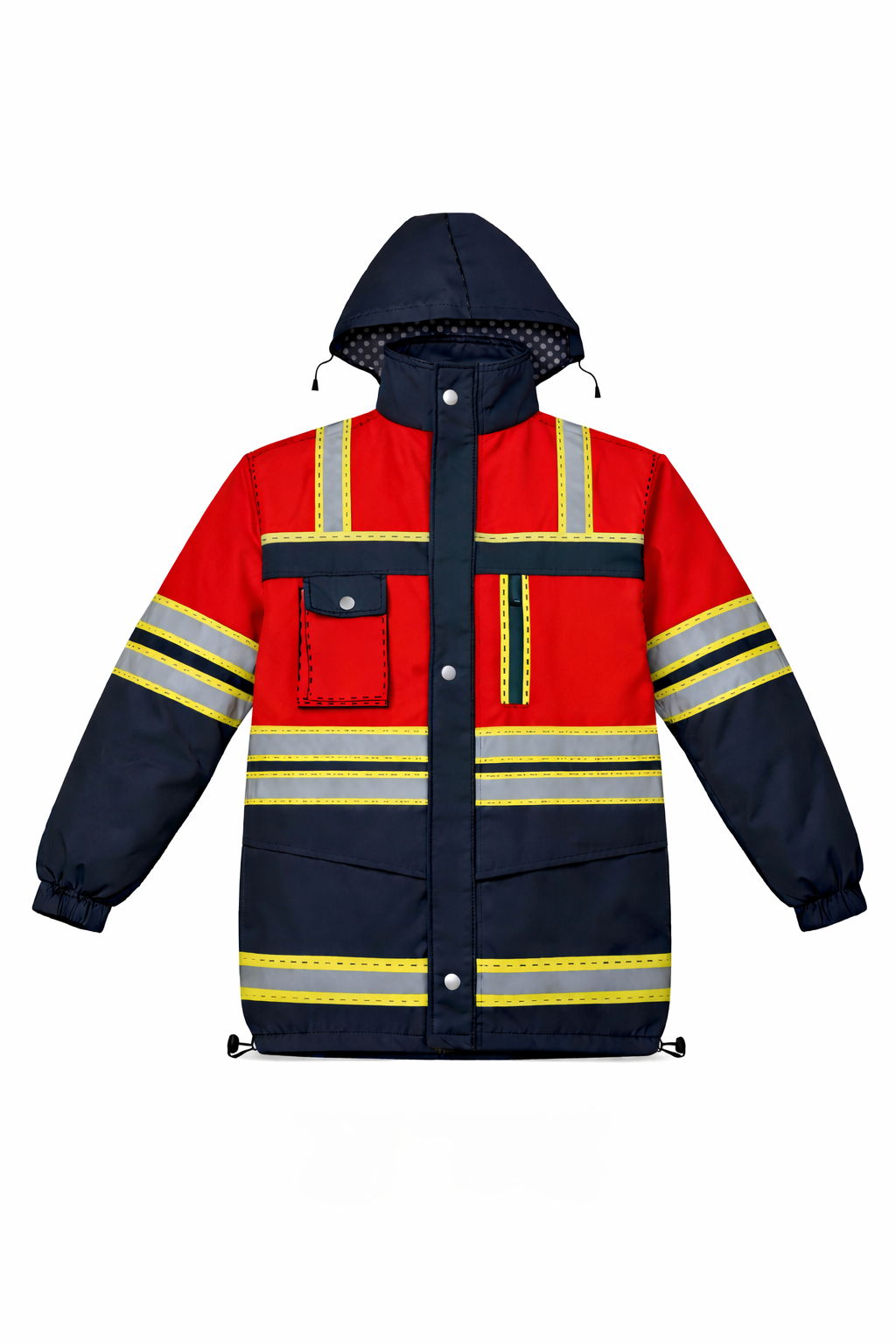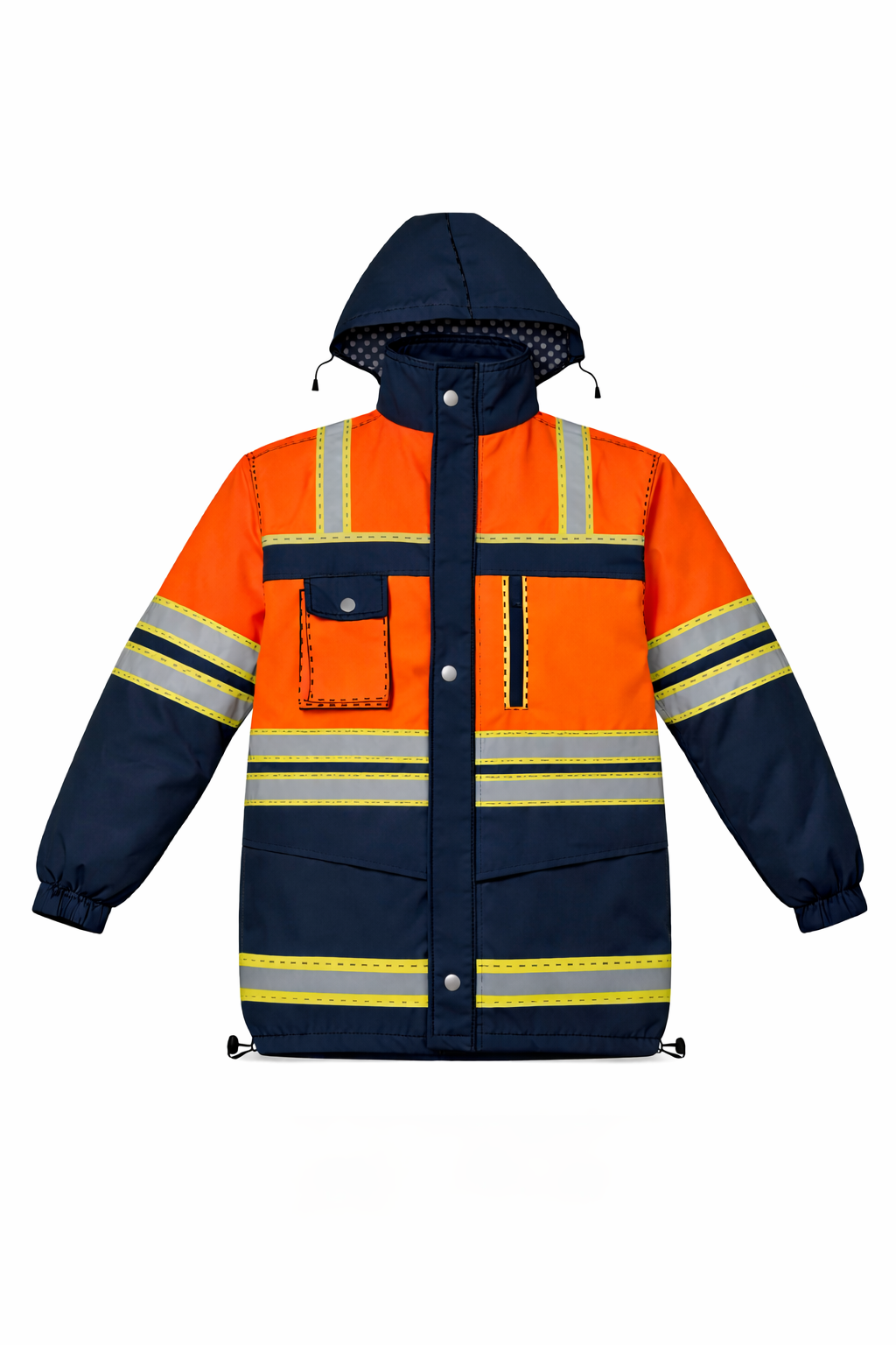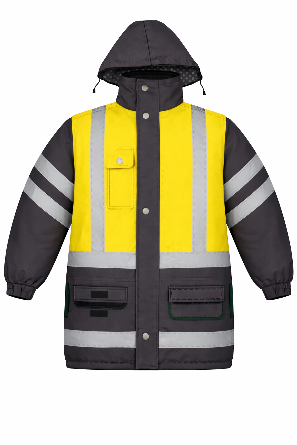 CASACA TÉRMICA CON CUELLO ALTO, 2 BOLSILLOS PARCHE CON TAPA Y VELCRO EN PECHO, 2 BOLSILLOS PARCHE CON TAPA Y VELCRO INFERIORES, UN BOLSILLO TIPO OJAL, PUÑOS ELASTICADOS, SOLAPA TAPA CIERRE CON VELCRO, CIERRE TRACTOR PLÁSTICO PRINCIPAL, CAPUCHA DESMONTABLE
