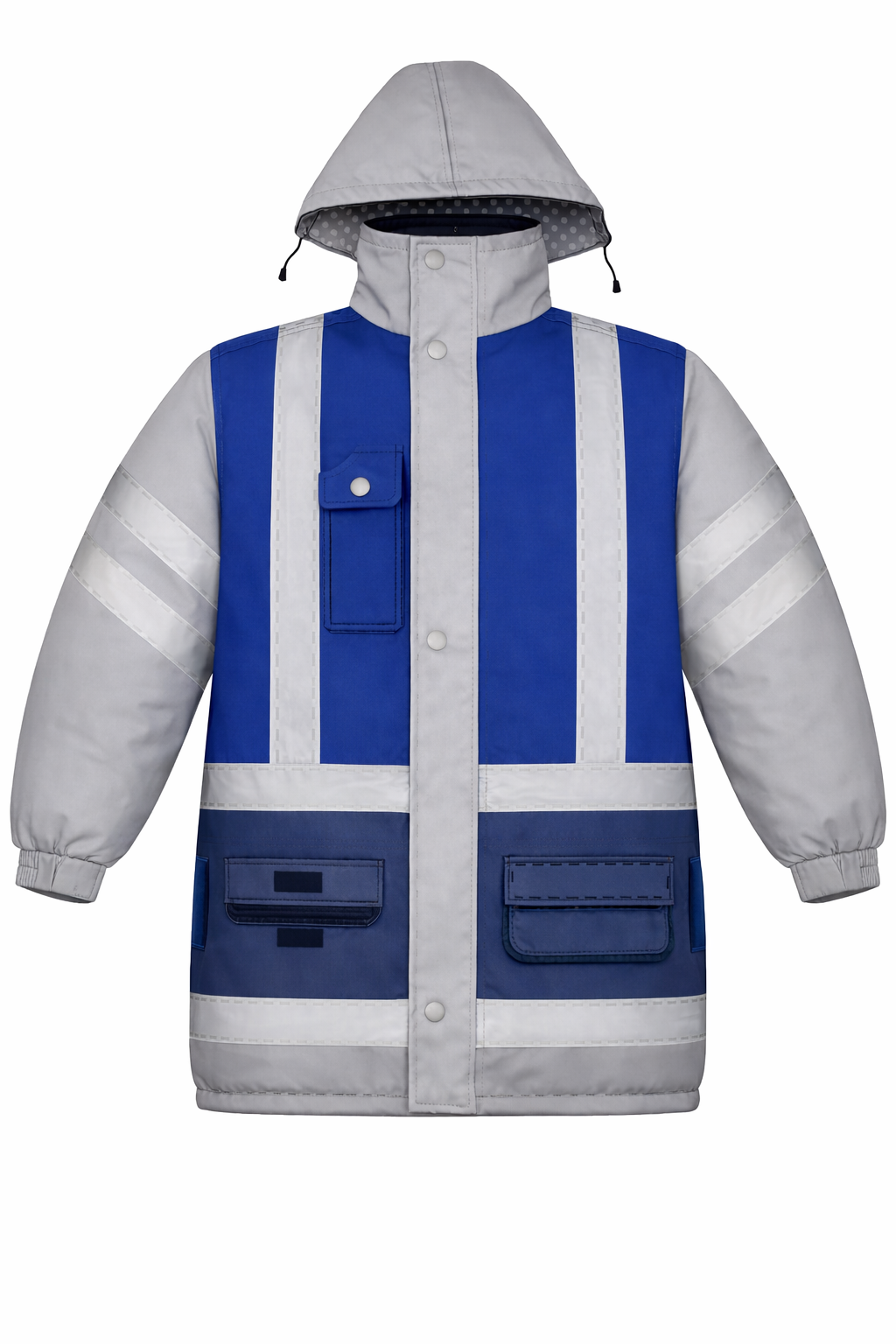Sacón térmico – dos bolsillos inferiores tipo ojal – puños elasticados – tapacierre con broches metálicos